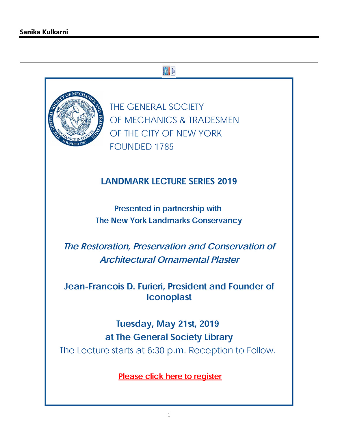 The Landmark lectures focus on the origin, development, and restoration of New York City’s built environment, and celebrate the art and architecture of the City.